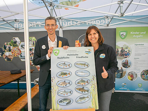 Zusammen mit Kollegen der Fischereibehörde Sachsen standen die Vereins- und Verbandsvertretern für Fragen rund um das Thema Angelfischerei zur Verfügung. So entstanden viele anregende Gespräche. Der ein oder andere Besucher schwelgte in Erinnerung an die Zeit, wo er selbst noch aktiver Angler war. Andere interessierten sich für den Weg zum Fischereischein und damit zum ersten eigenen Fang. Wieder andere Besucher erfreuten sich einfach an den Fischlerntafeln, wo man sein Wissen über die heimische Fischfauna auffrischen konnte. Das Interesse der Besucher war breit gestreut. Wie geht’s unseren Flüssen? Kann man Güstern wirklich essen und was sind eigentlich Rundmäuler? Keine Fragen blieben unbeantwortet. Am Sonntag erhielt der Informationsstand des Anglerverbandes zudem Besuch von Ministerpräsident Michael Kretschmer und Umweltminister Georg-Ludwig von Breitenbuch.